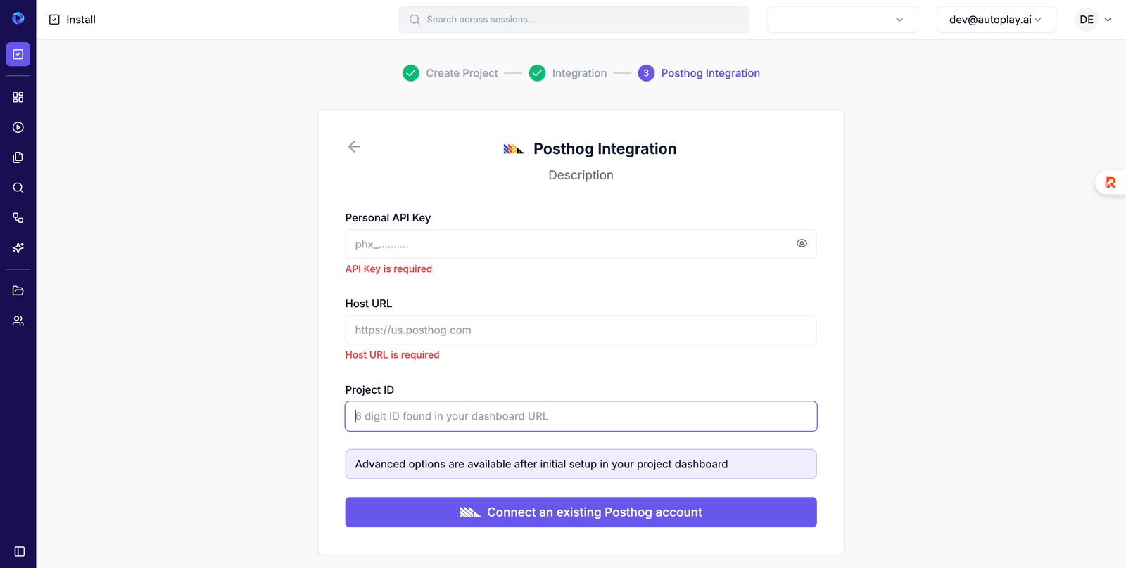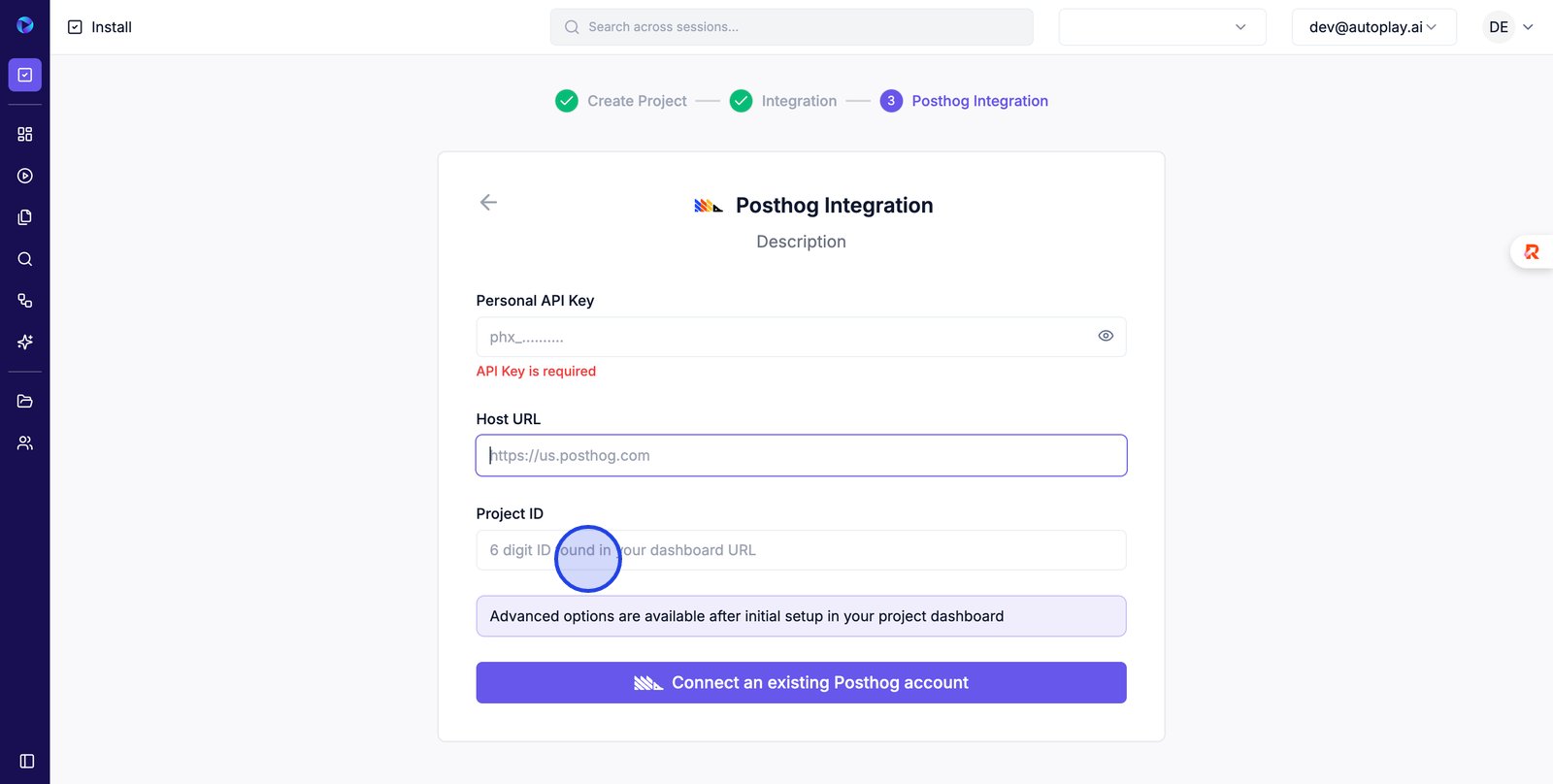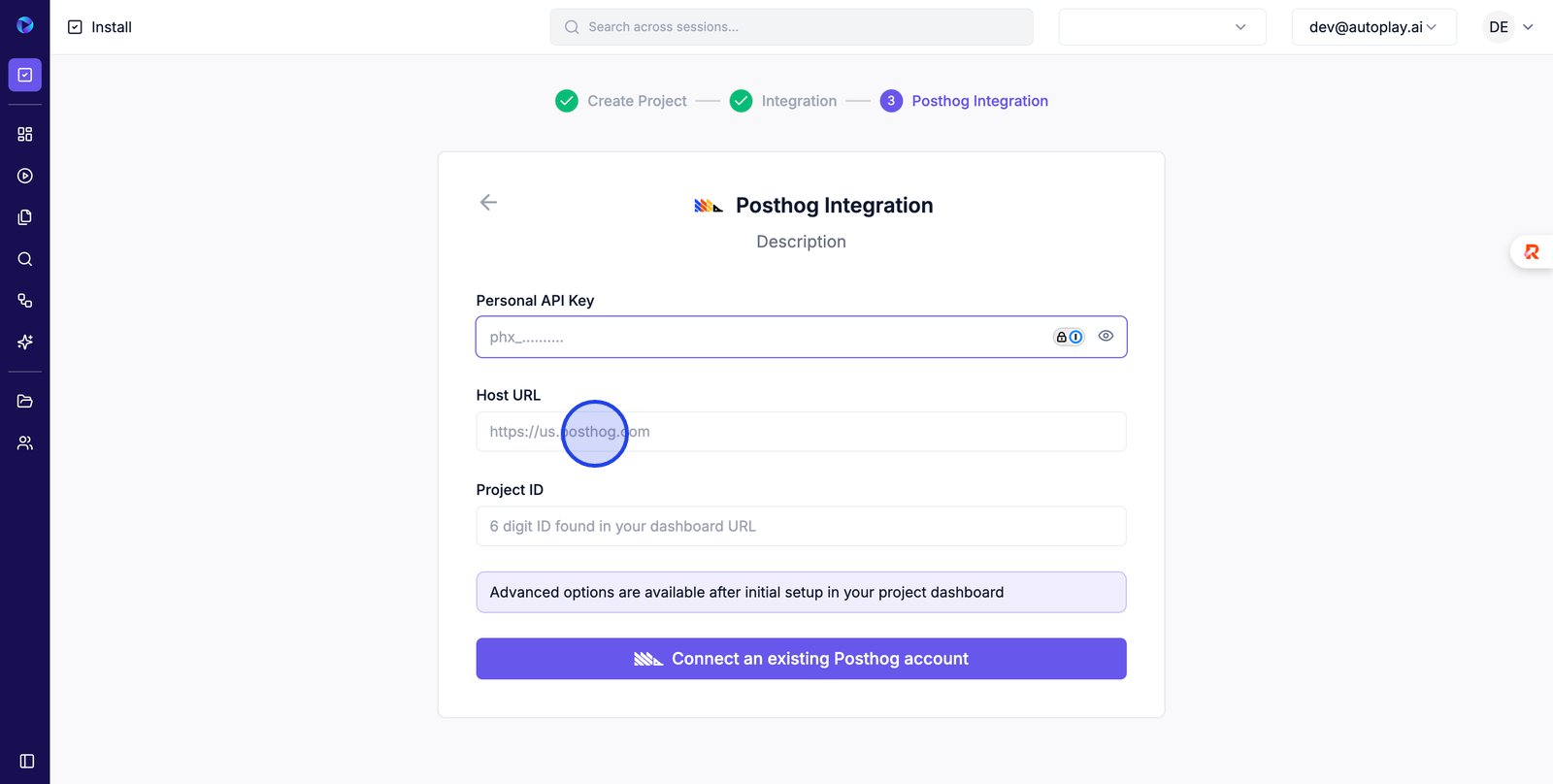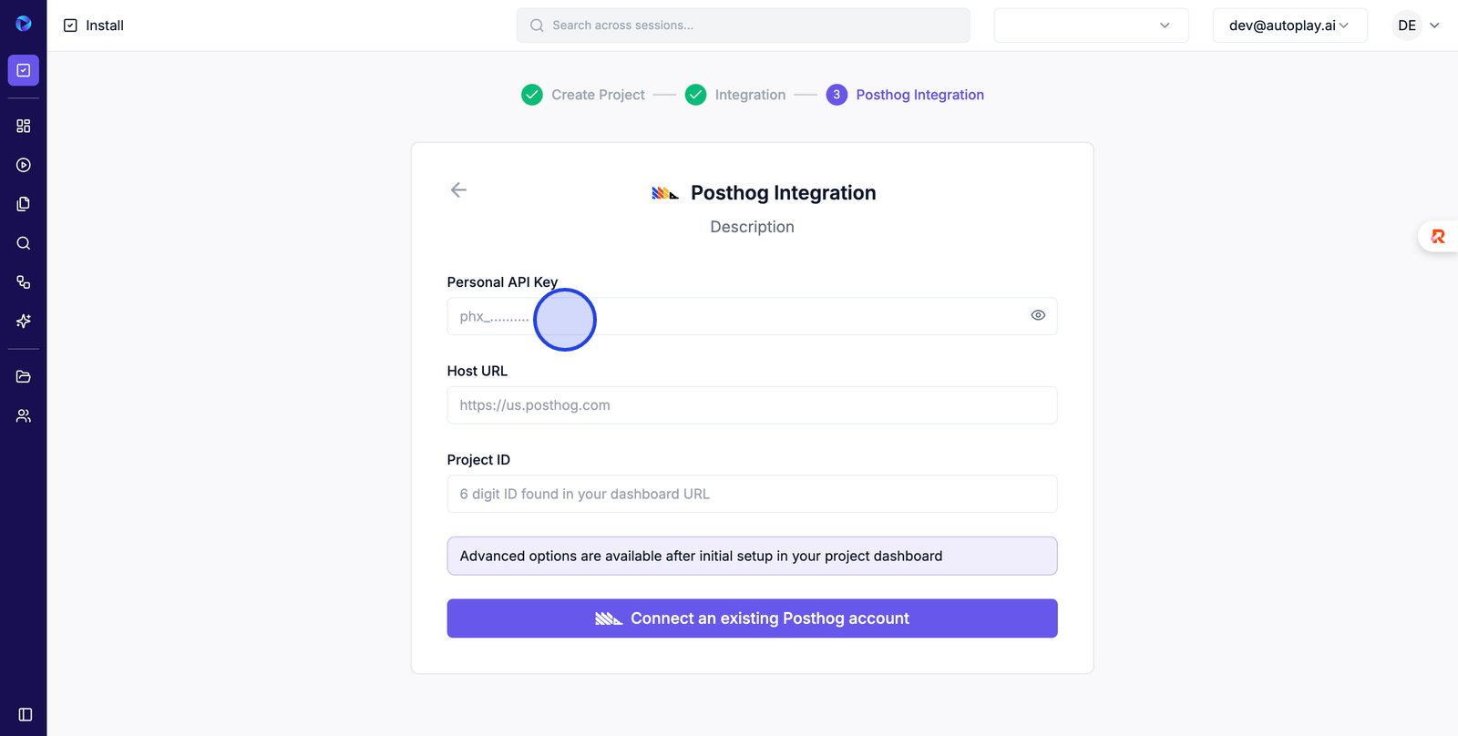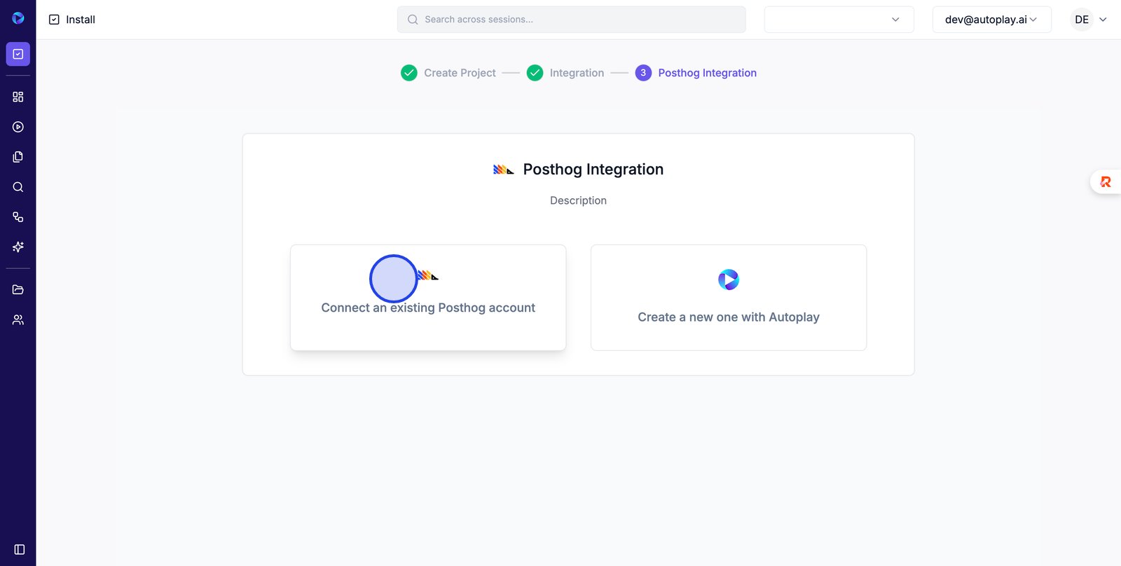 8. Choose Connect an existing Posthog account if you already have a Posthog setup you want to link.