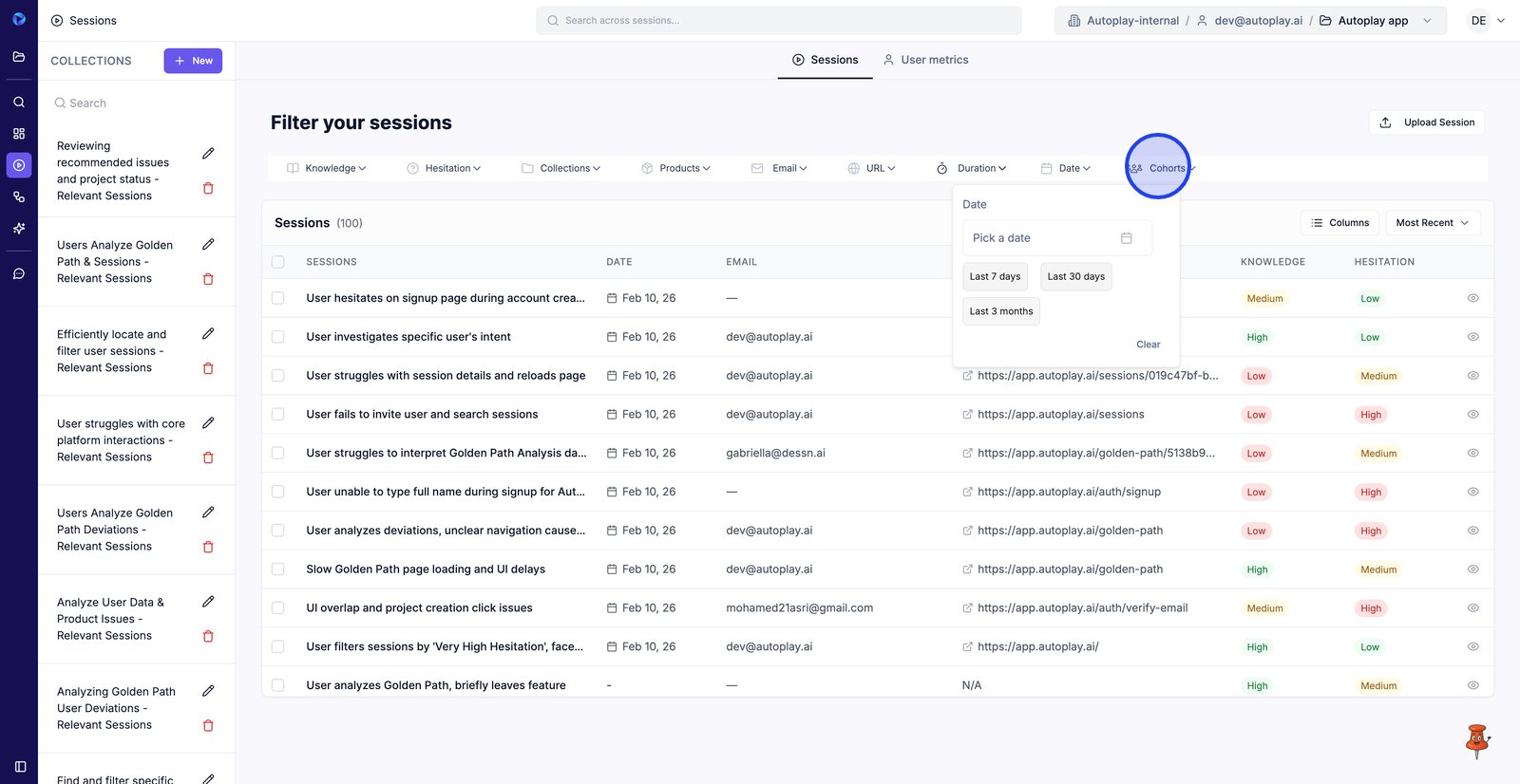 15. Open Cohorts to filter sessions to a specific user segment.