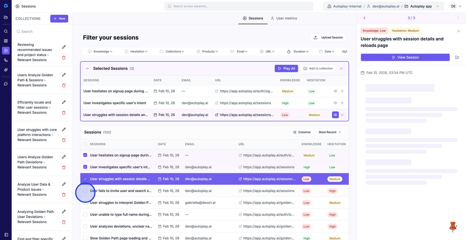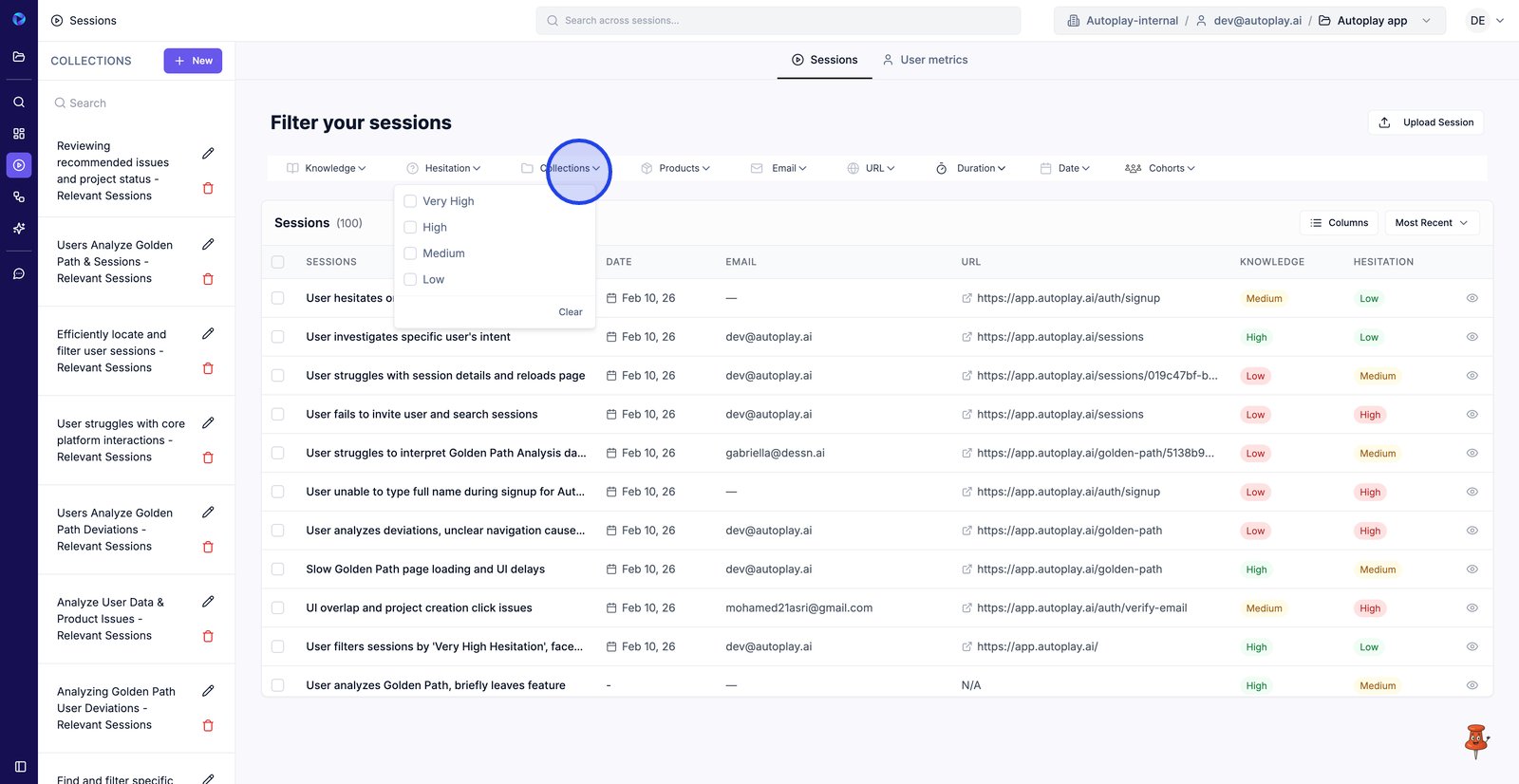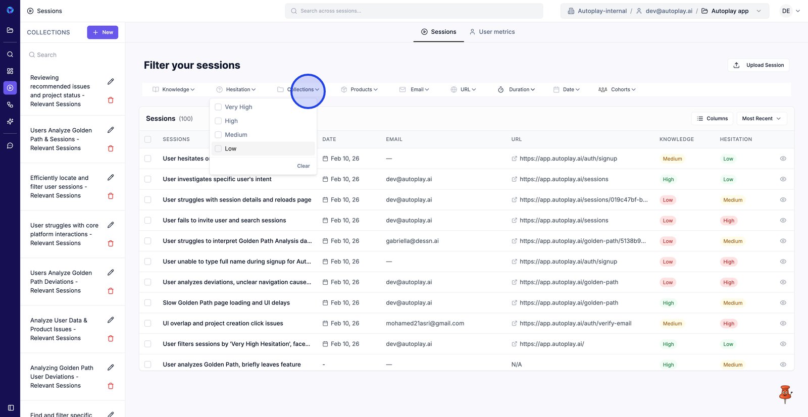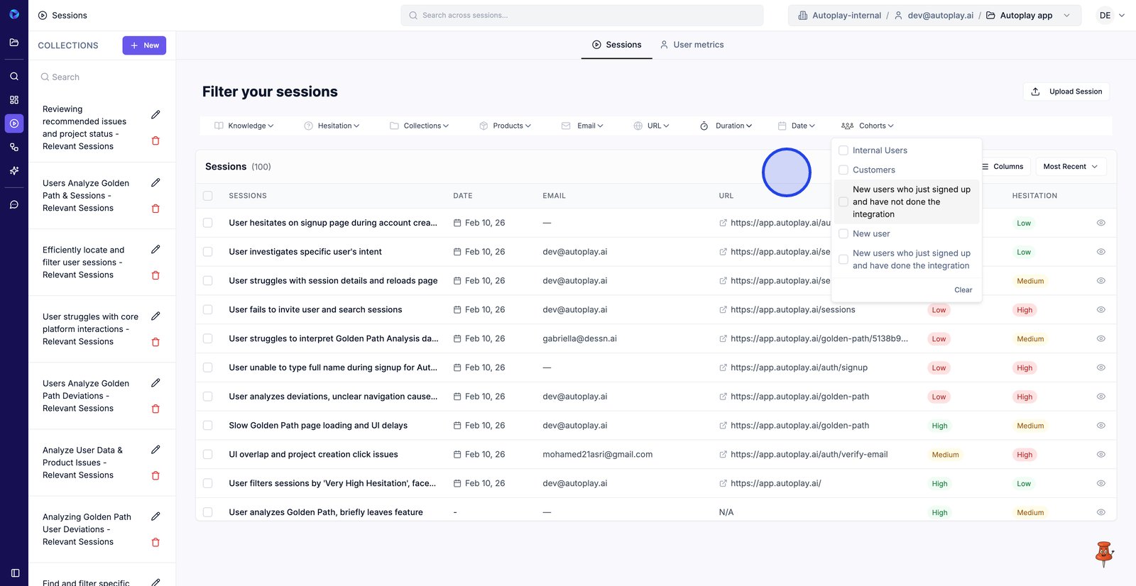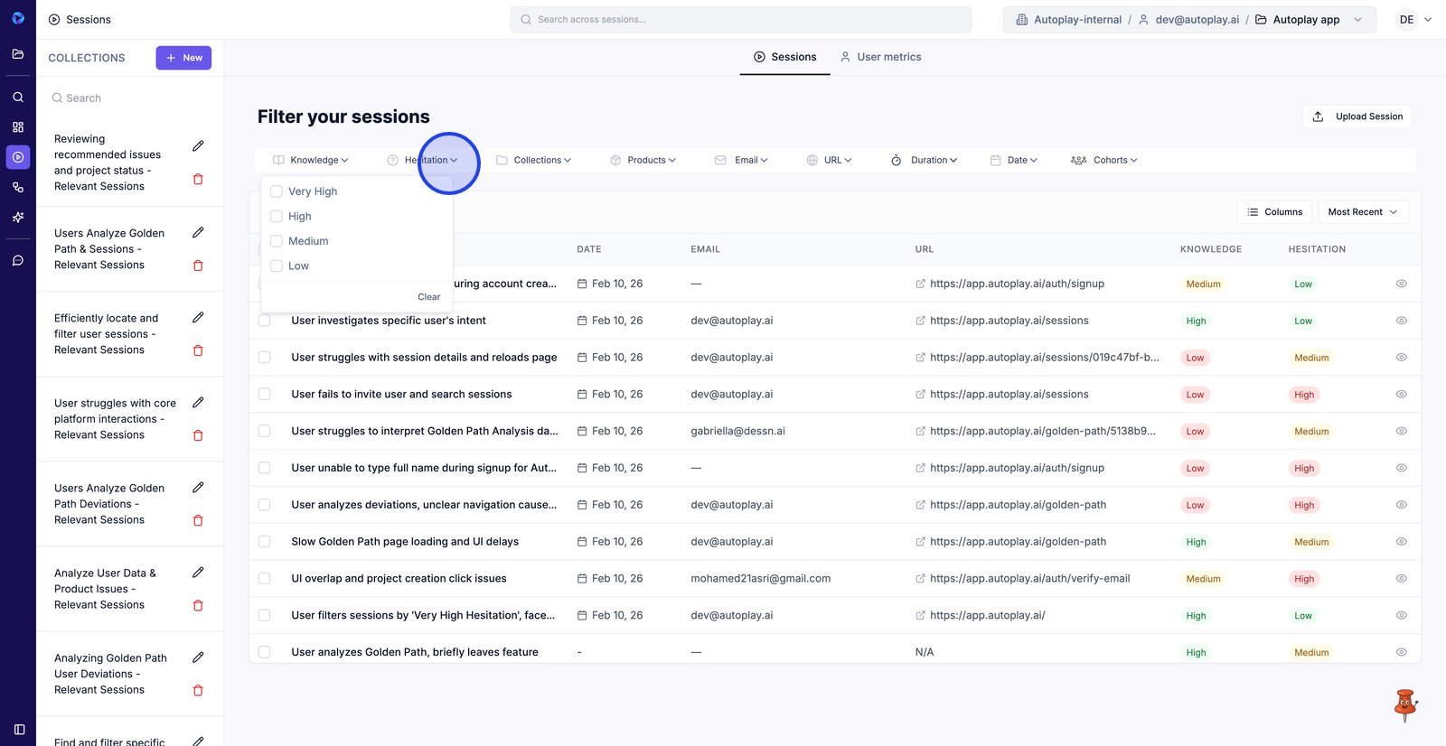 4. Filter by Hesitation to focus on sessions where users show more friction.