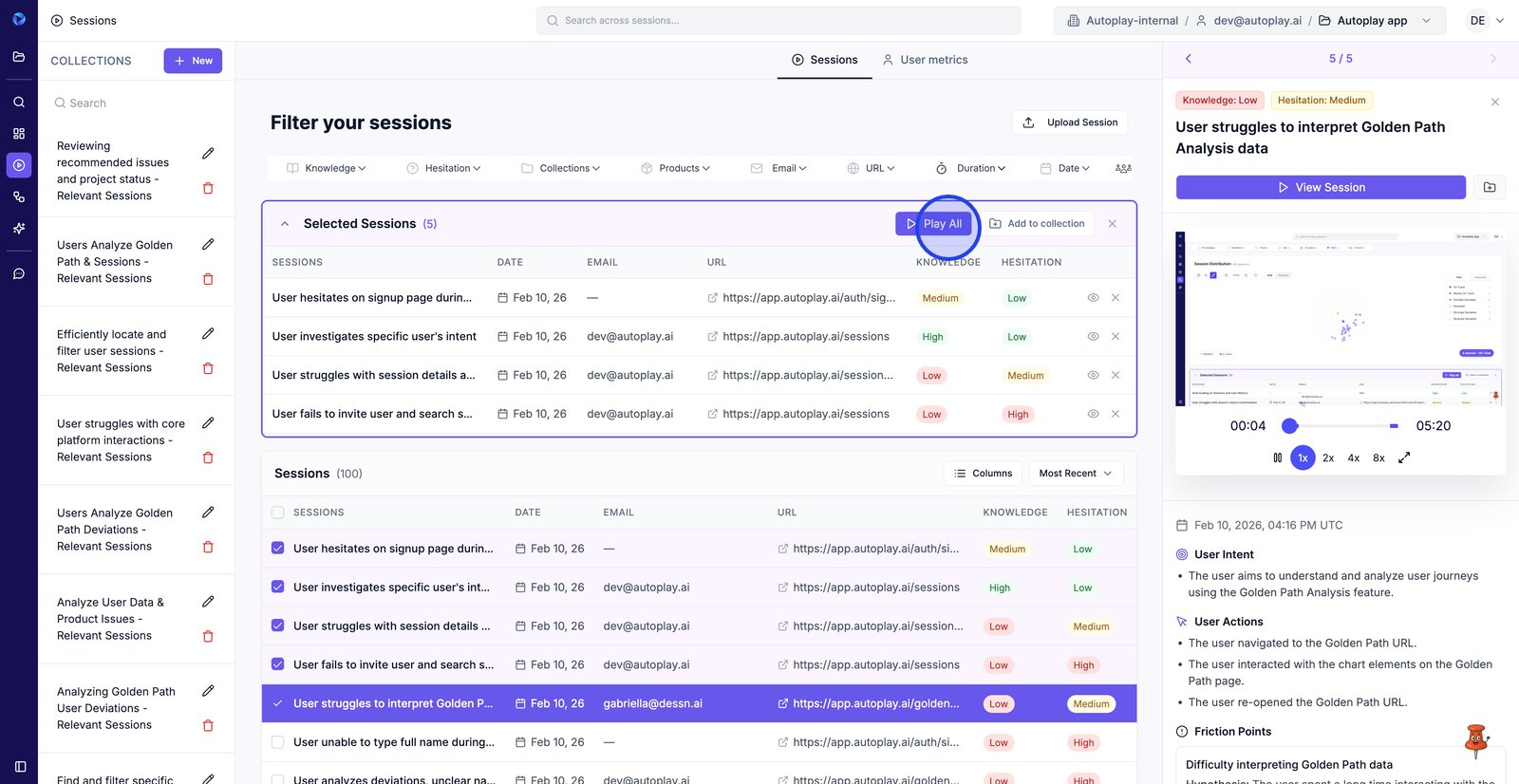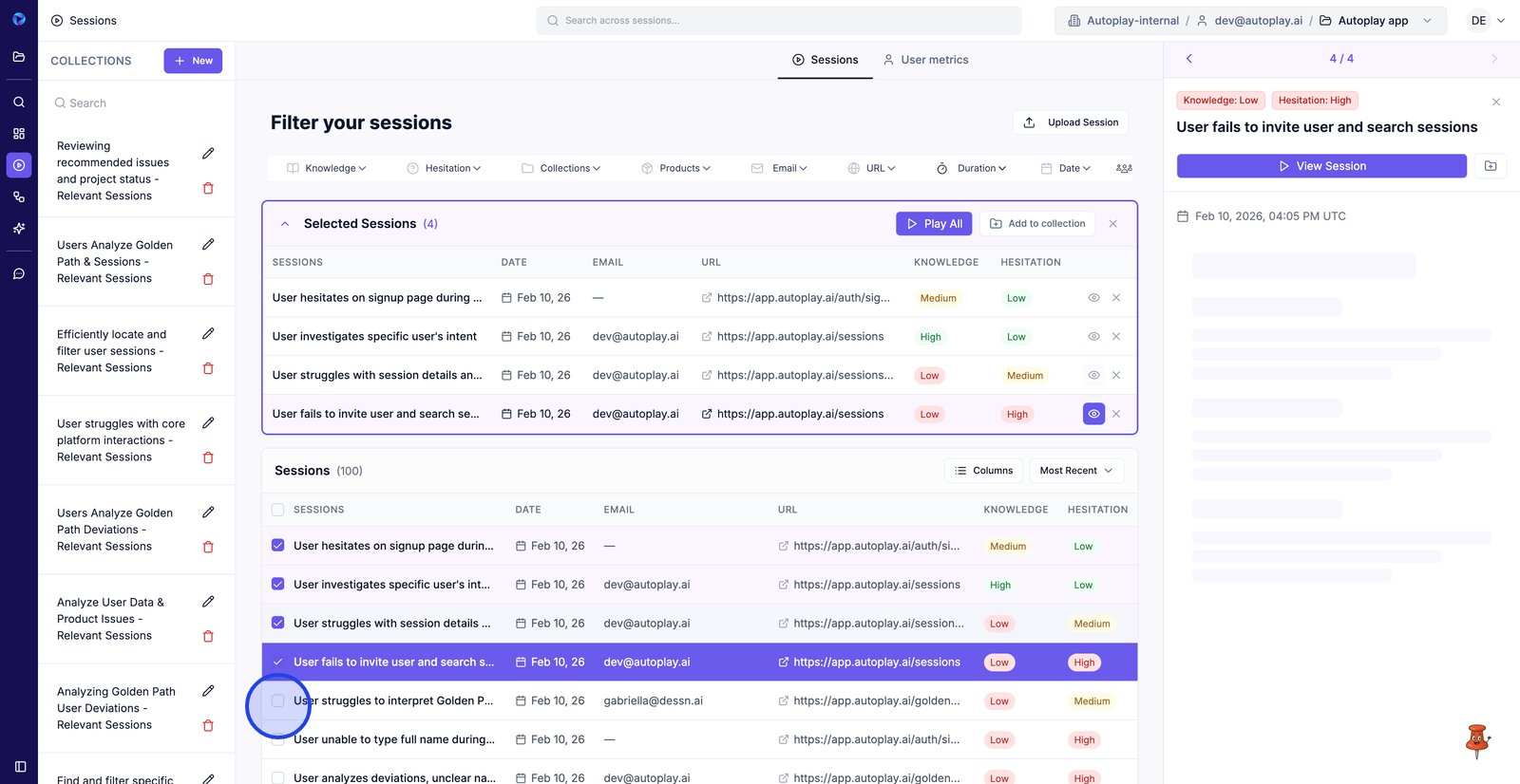 5. Open Collections to filter sessions to a saved group you want to review.