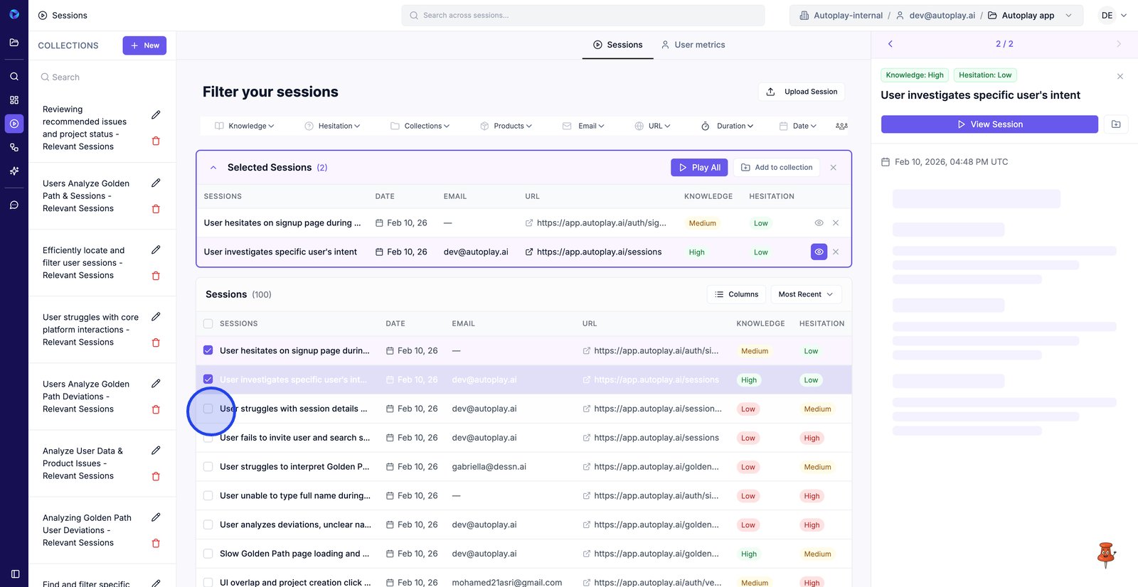 21. Select a session to add it to a batch for side-by-side review.