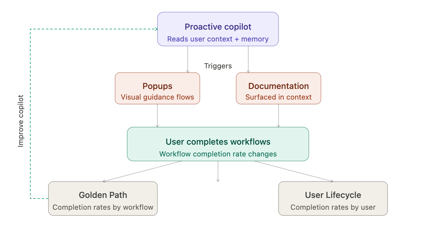 Building a copilot is only half the job — you need to know if it's actually working and improving adoption among your users. In this system, your documentation and popups are the outputs your copilot triggers. Evaluation means making sure those outputs are always accurate, timely, and relevant to each user.