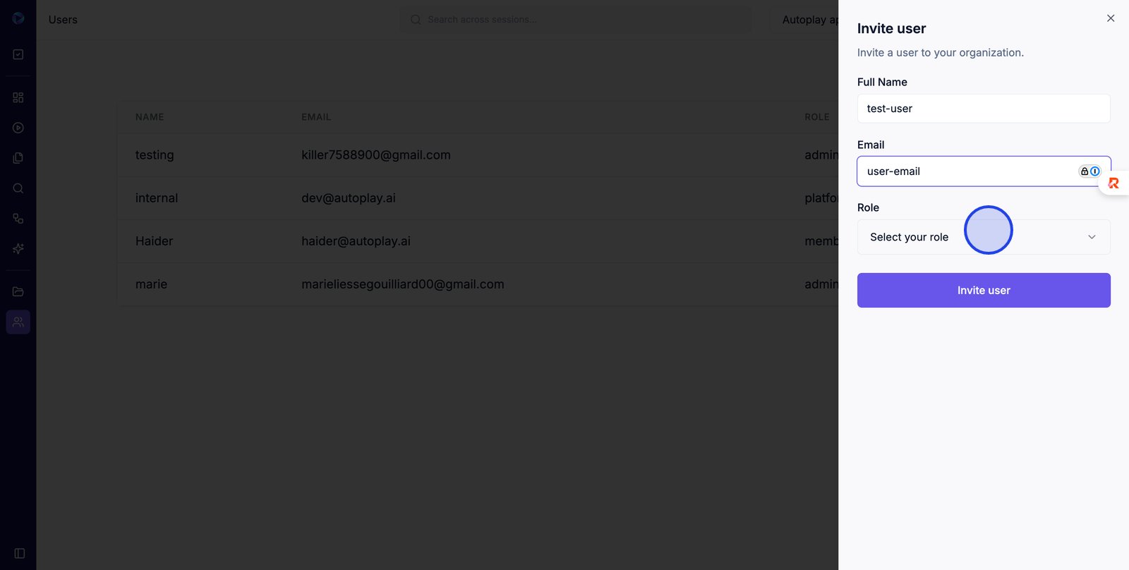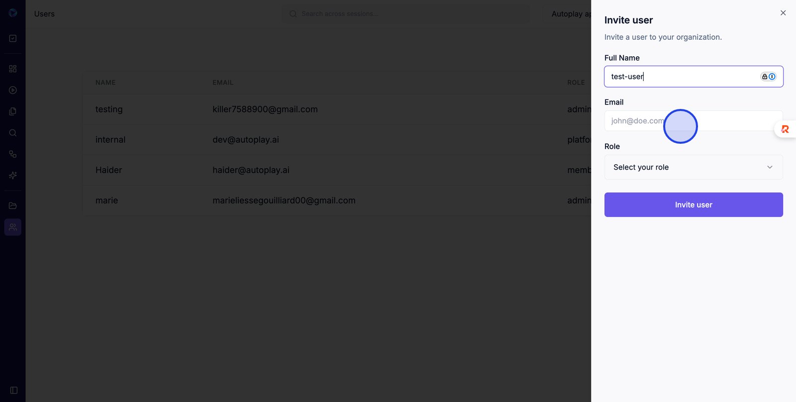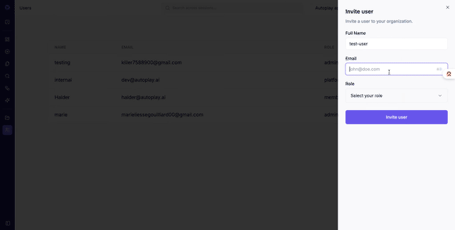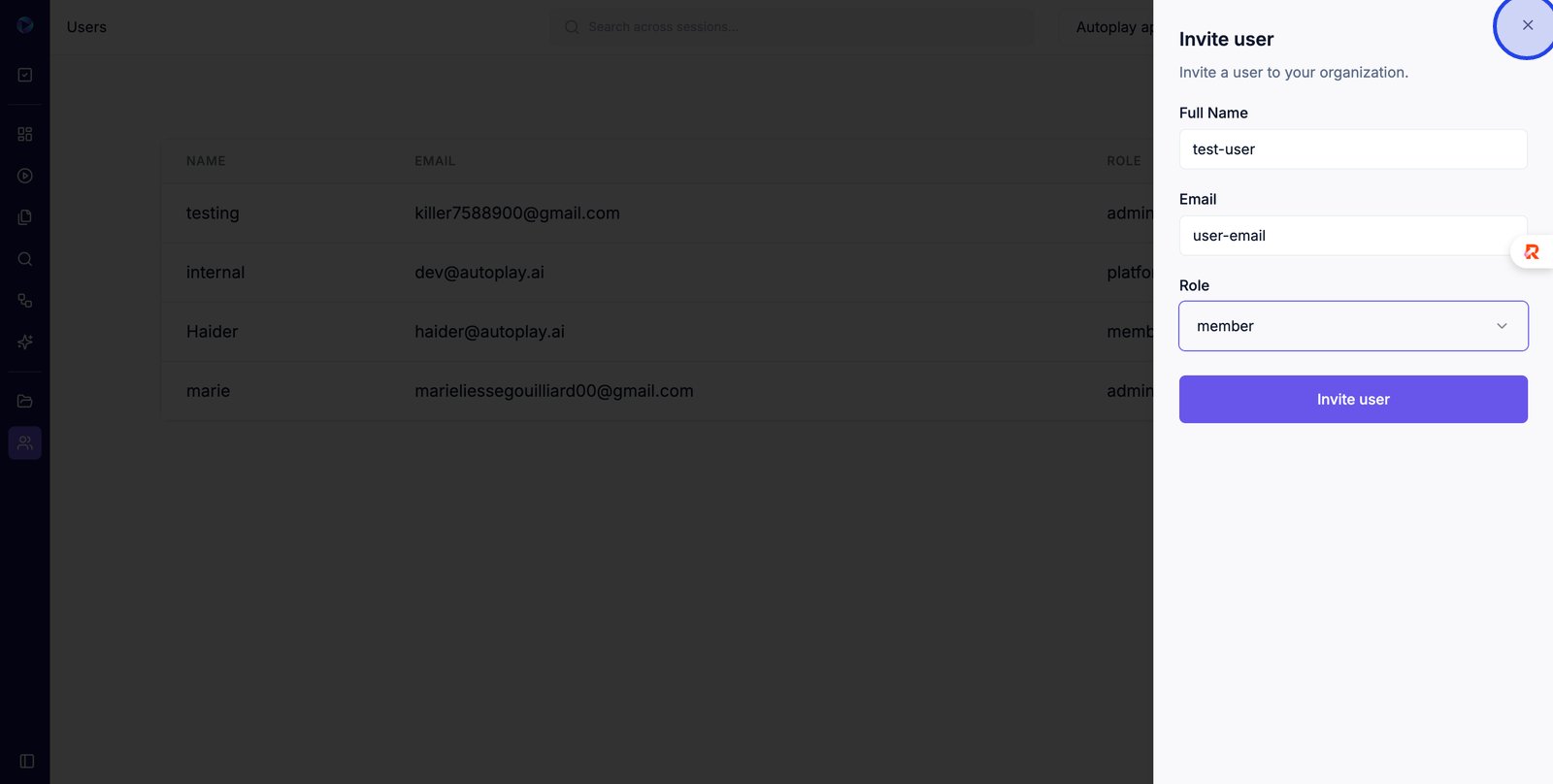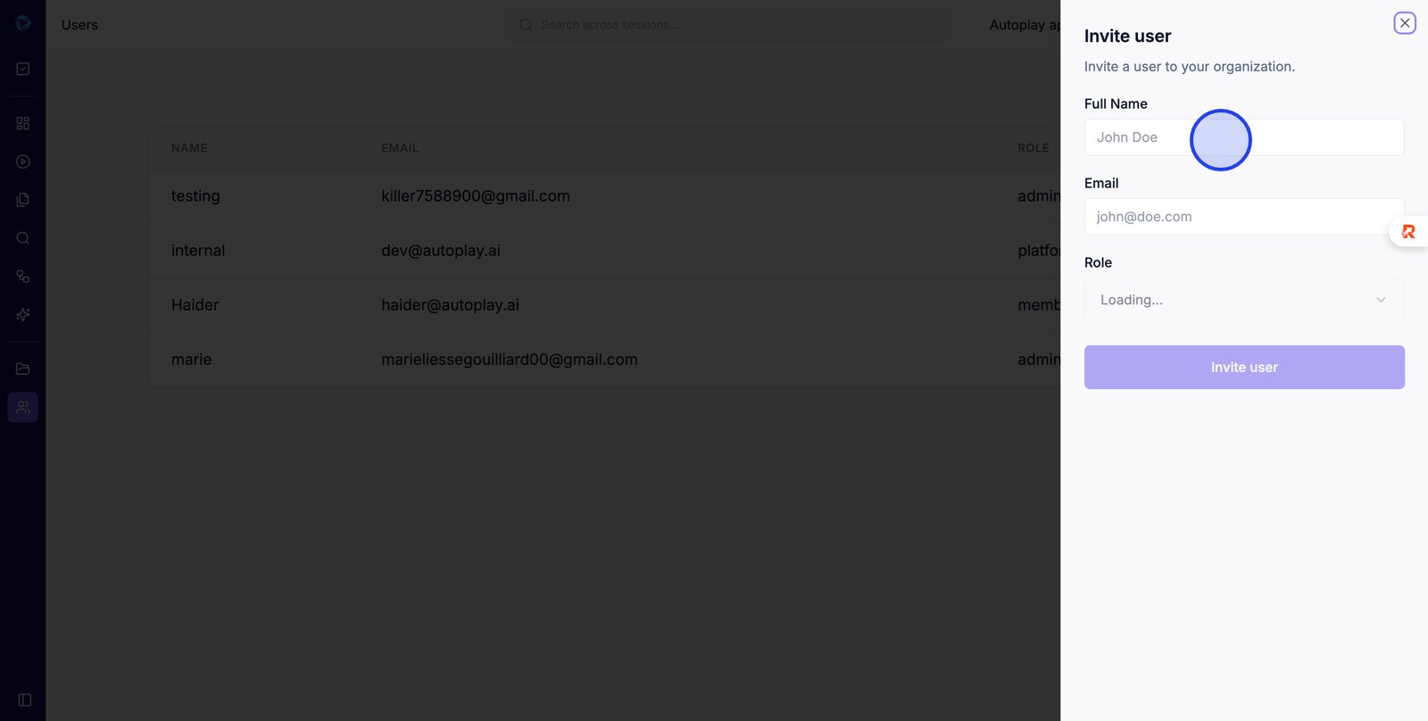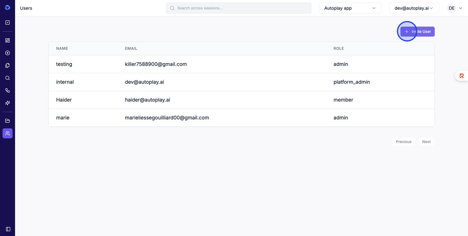 2. Cliquez sur le bouton Inviter un utilisateur pour commencer à ajouter un nouvel utilisateur.