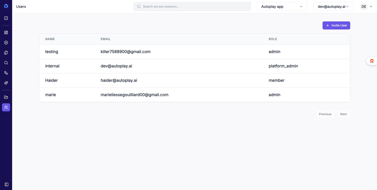 1. Accédez à la section Utilisateurs pour gérer l'accès et les rôles de votre équipe.