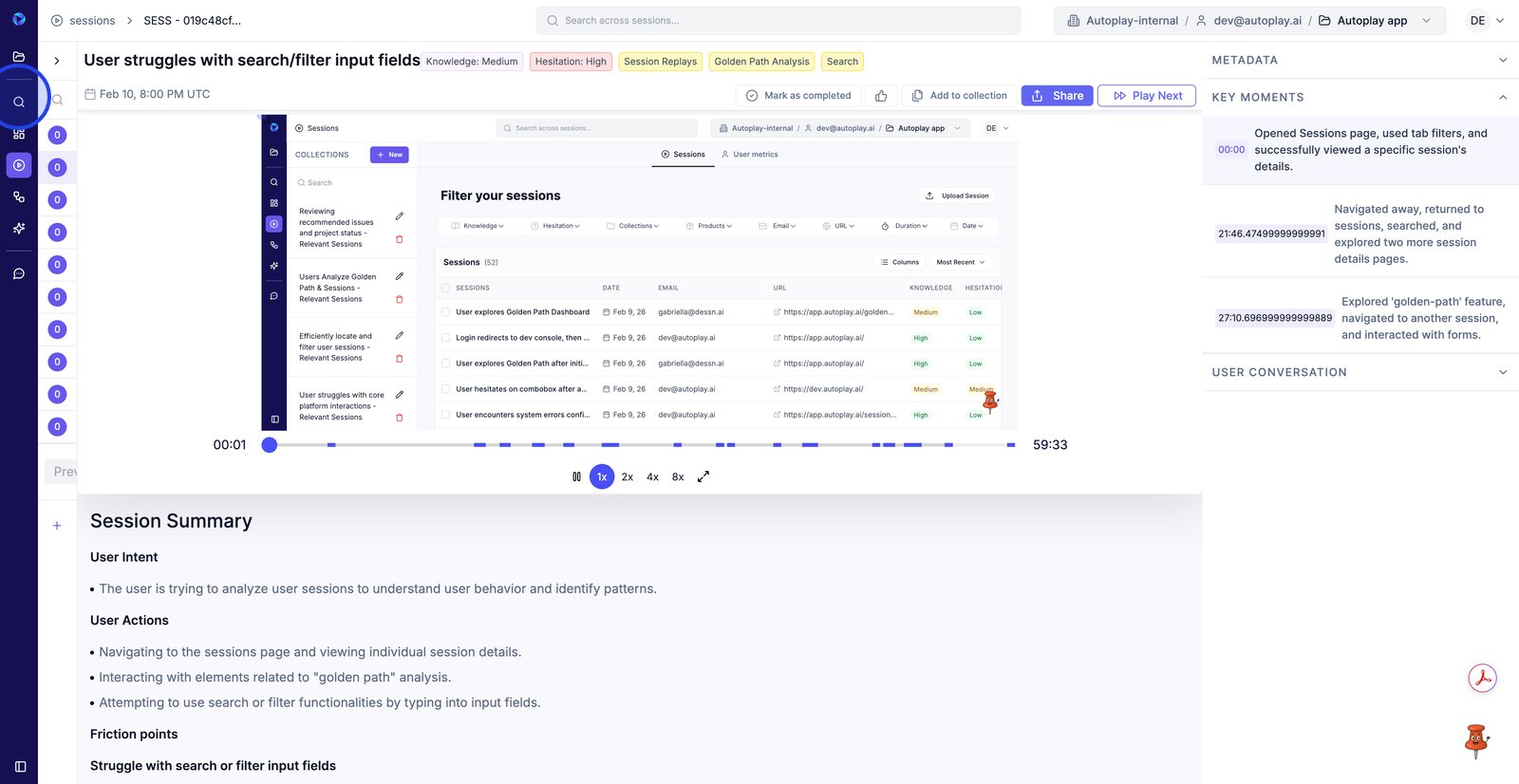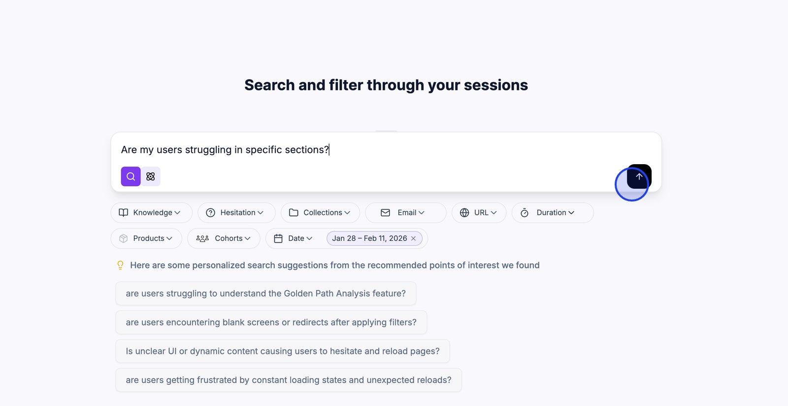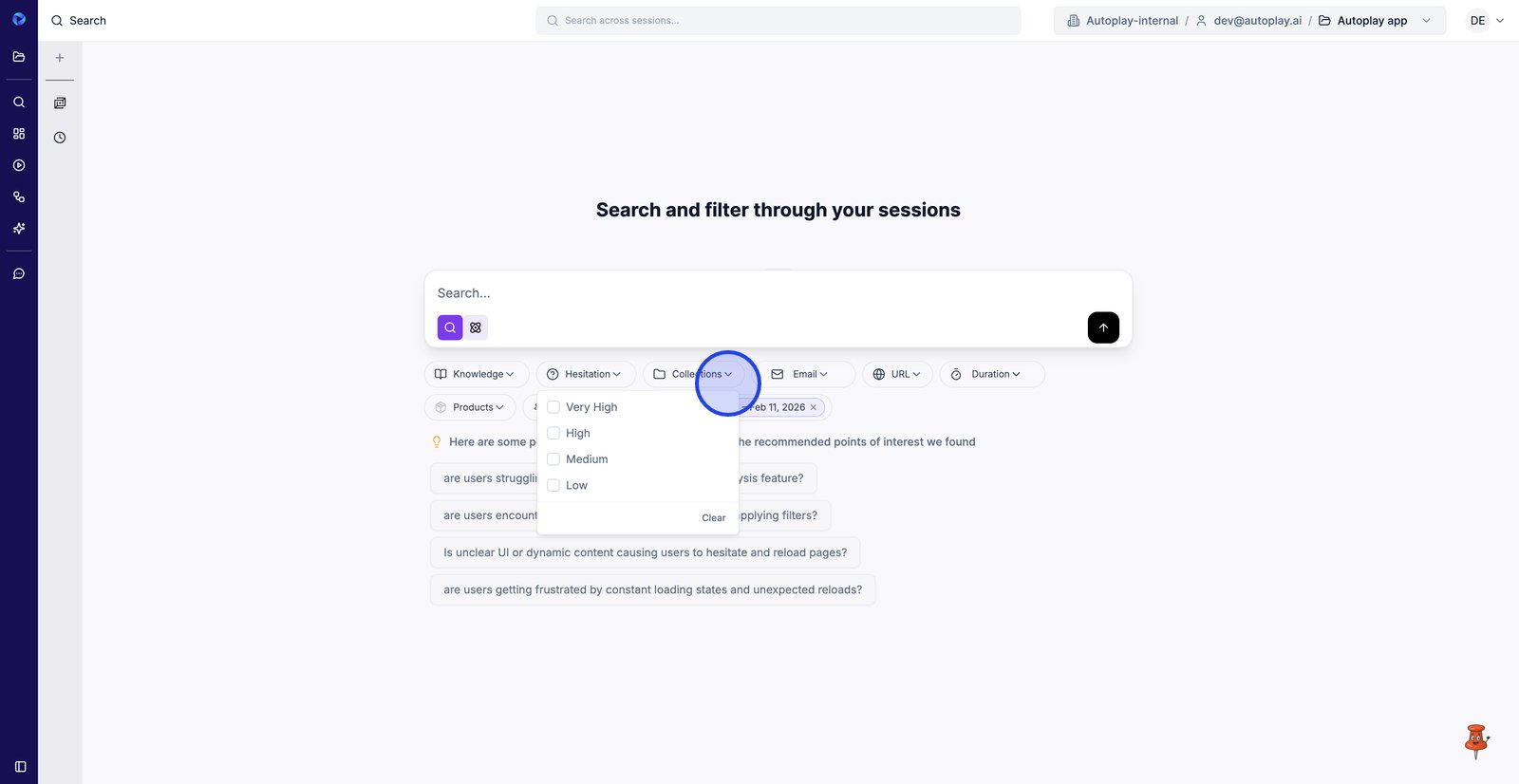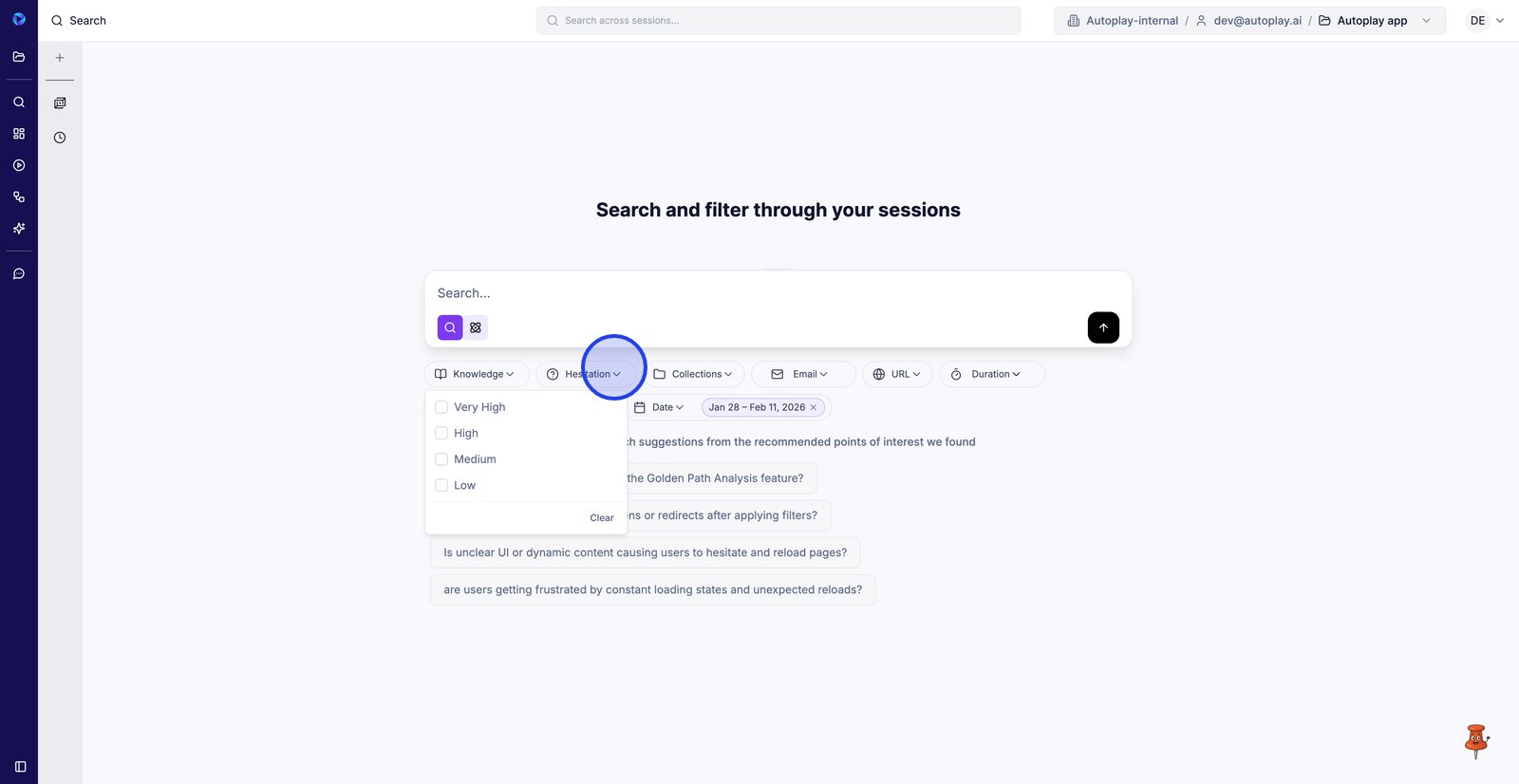 3. Utilisez les niveaux d'hésitation pour vous concentrer sur les sessions où les utilisateurs semblaient bloqués ou incertains.