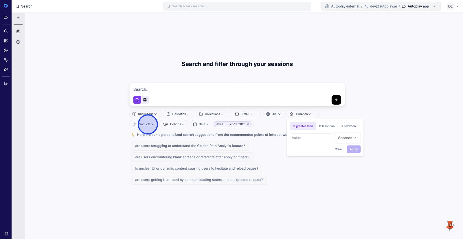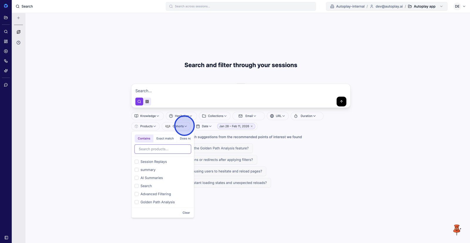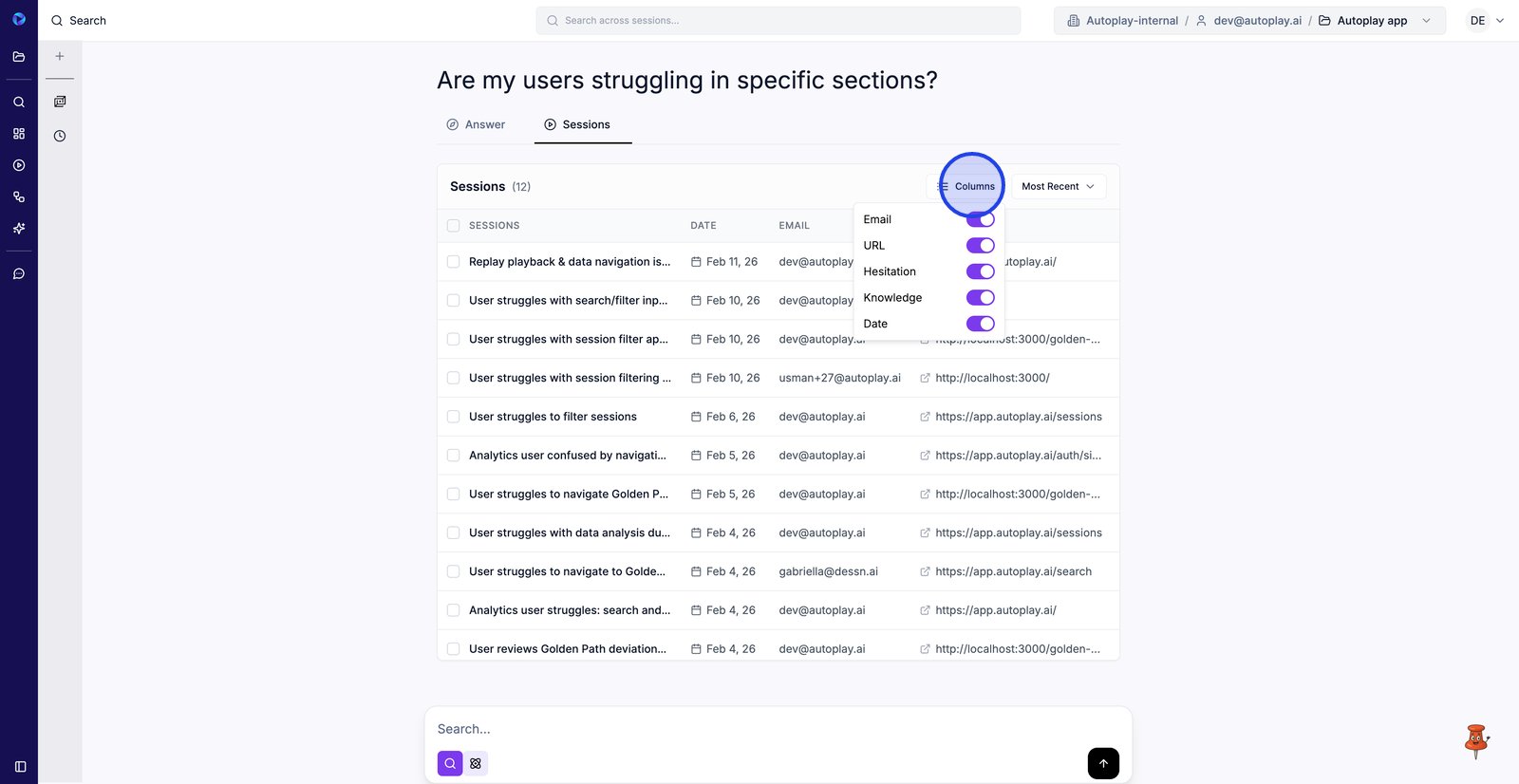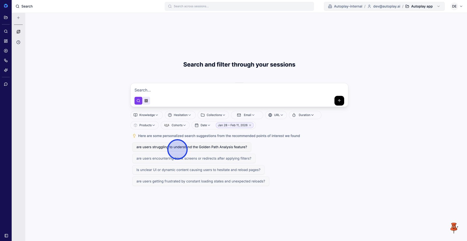 3. Utilisez les niveaux d'hésitation pour vous concentrer sur les sessions où les utilisateurs semblaient bloqués ou incertains.
