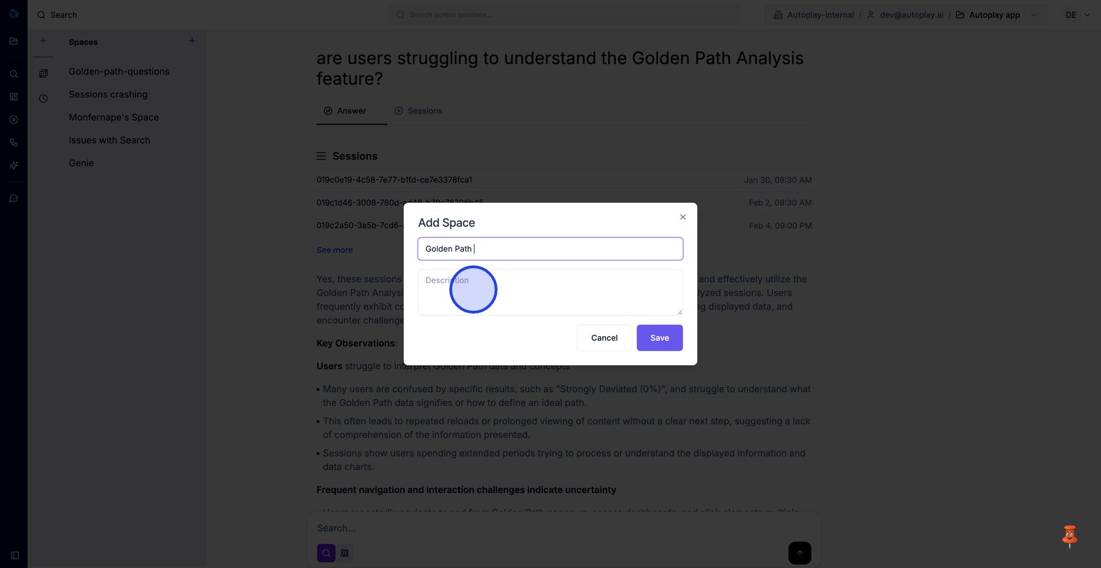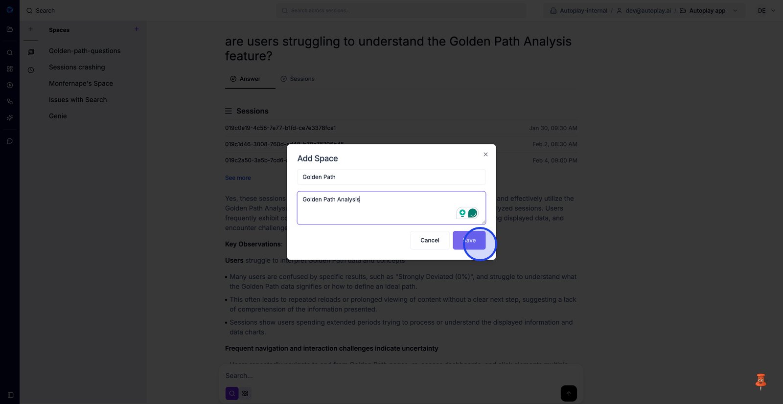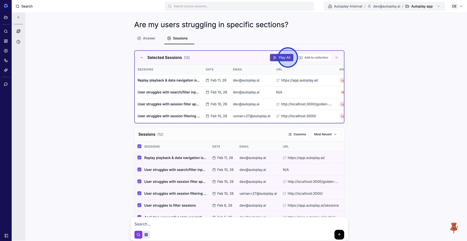 15. Passez à l'onglet Sessions pour revoir les rediffusions exactes qui ont permis d'obtenir la réponse.