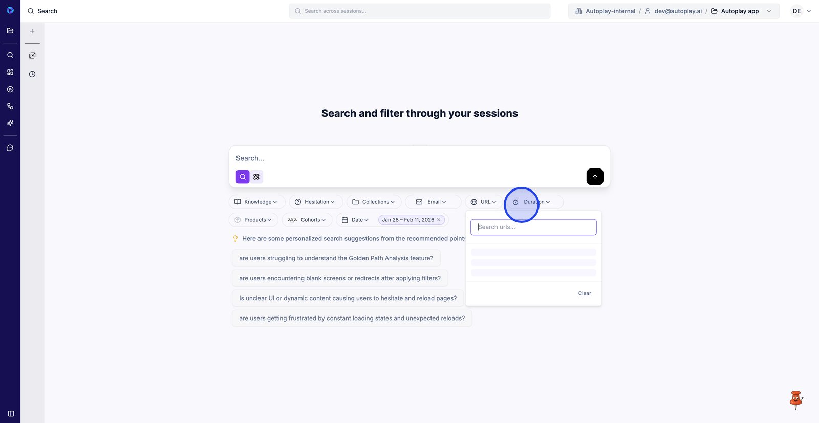 7. Utilisez le filtre d'URL pour trouver les sessions qui incluent une page ou une route particulière.