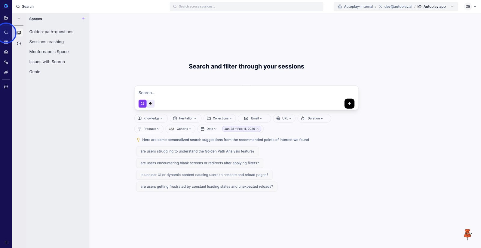 1. Cliquez sur Rechercher dans la barre latérale gauche pour commencer à trouver les sessions à analyser.