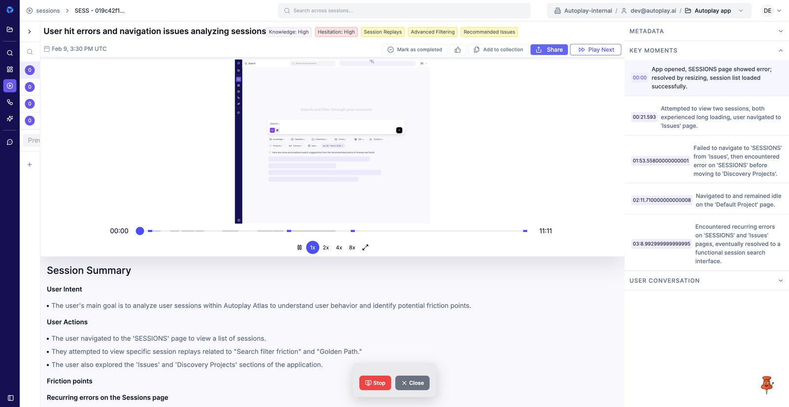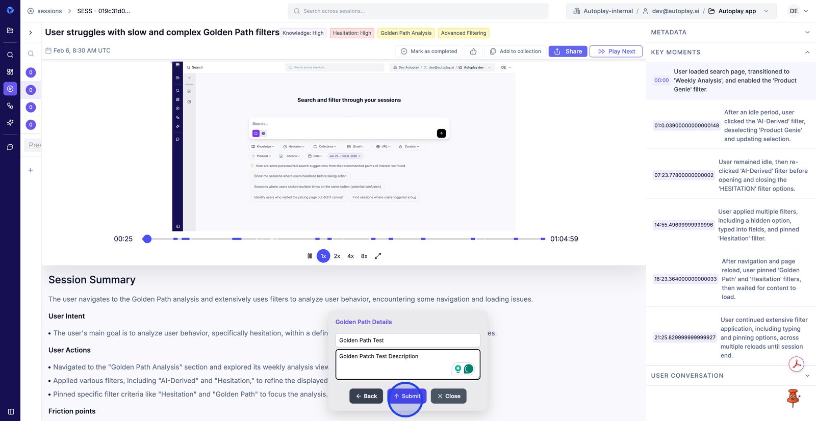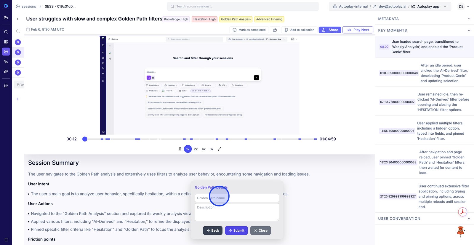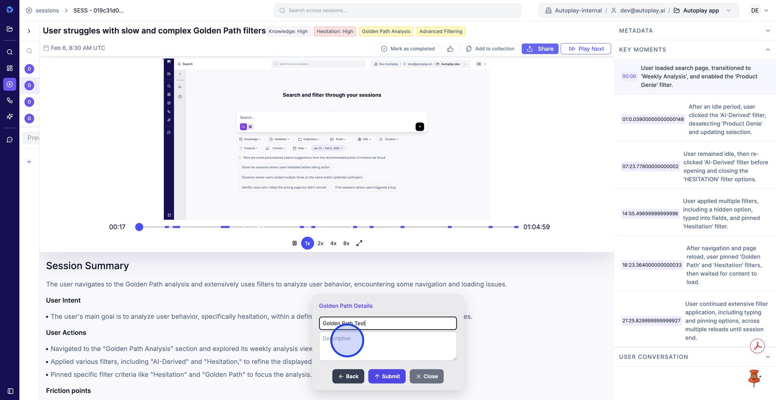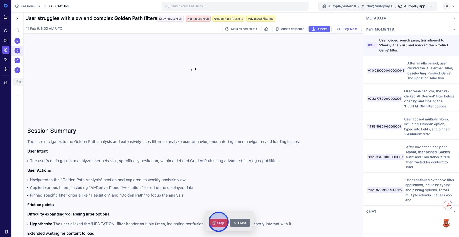 2. Commencez par effectuer les étapes prédéfinies (dans ce cas, l'analyse des rediffusions de session).
